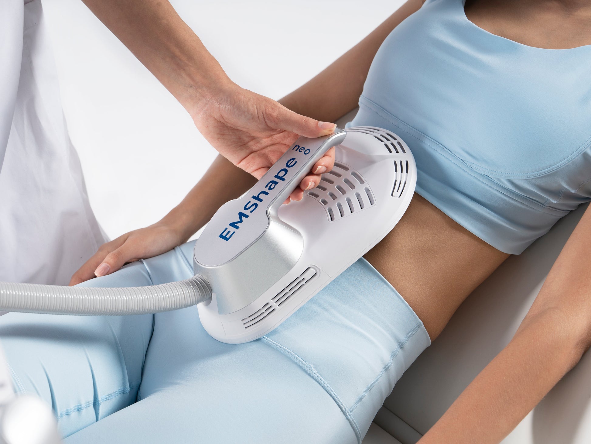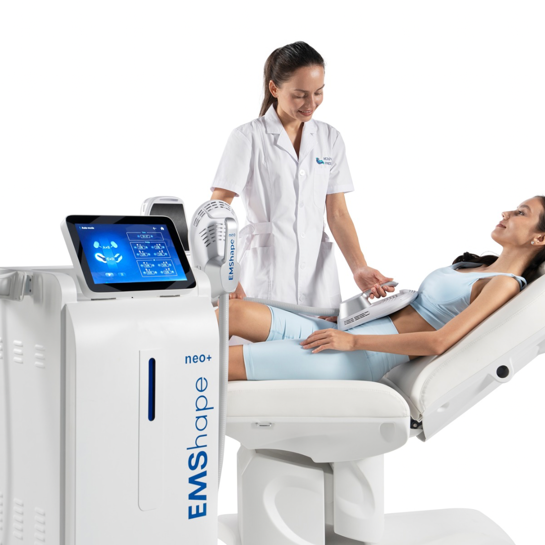 EMShape® Neo Plus is pretty amazing. It takes the incredible base that EMShape® has, with it’s high intensity concentrated magnetic muscle training (HICMMT) technology, and smoothly mixes in additional radio frequency energy at an optimal wavelength for improved performance - faster, more effective toning and firming, and more efficient muscle strengthening, plus the added benefit of fat reduction.